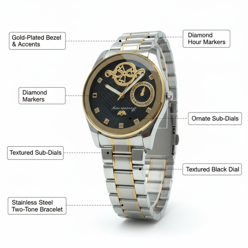 Durable Build: Crafted with a high-quality stainless steel case and a comfortable two-tone (gold and silver) bracelet.