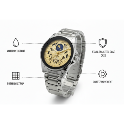 Luxury Silver Skeleton Automatic Watch With Sun Moon Phase
