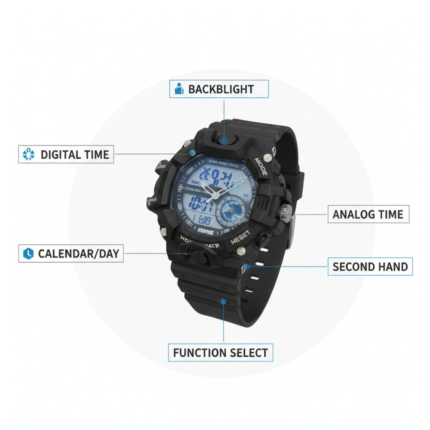 Bold Blue Black Dual Display Rugged Sports Watch ₨5,000.00 Original price was: ₨5,000.00.₨4,000.00Current price is: ₨4,000.00.