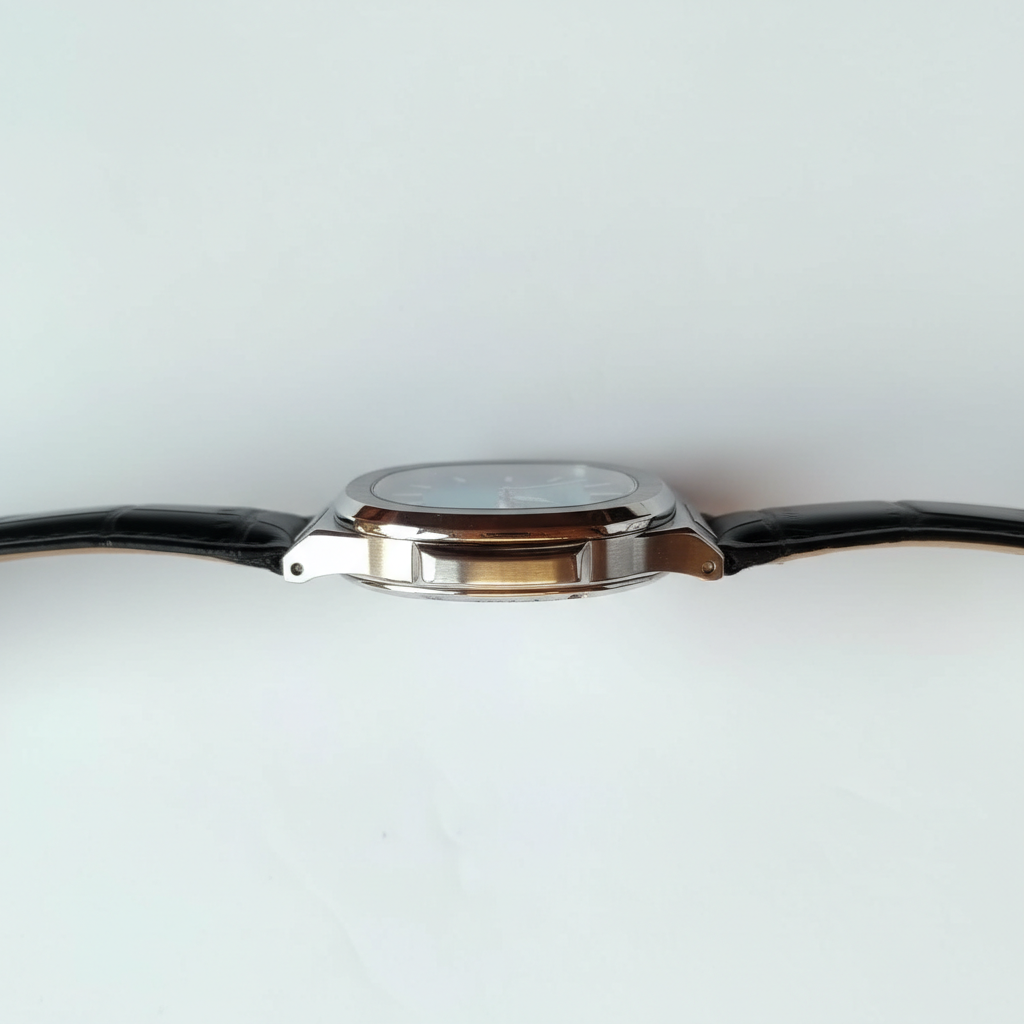 Home Watches Patek Philippe Nautilus Style Blue Dial Watch with Black Leather Strap