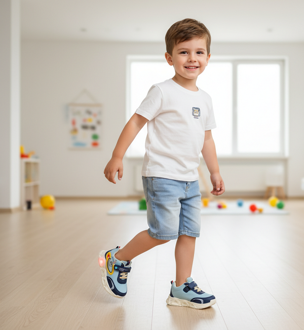 Boys’ Sporty Light-Up Shoes – Sky Blue with Navy Details