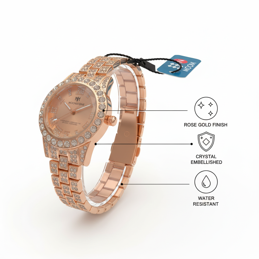 Elegant Rose Gold Women's Watch with Diamond Accent Bezel - Moonstone ₨5,000.00 Original price was: ₨5,000.00.₨4,000.00Current price is: ₨4,000.00.