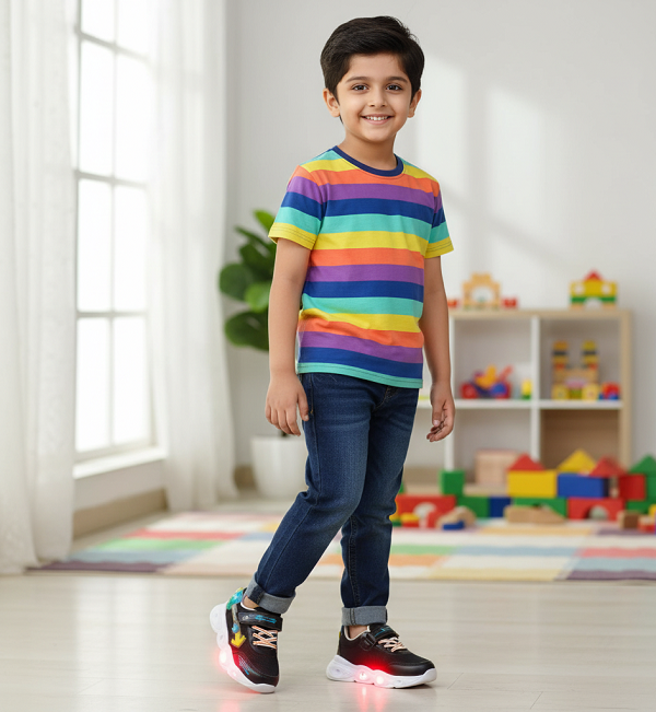 Kids LED Light-Up Sport Shoes – Black with Multi-Color Arrows
