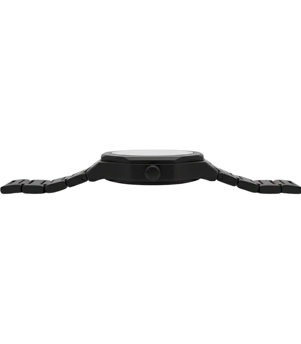 • Matte Finish: Premium matte black coating on the octagonal case and stainless steel link bracelet.