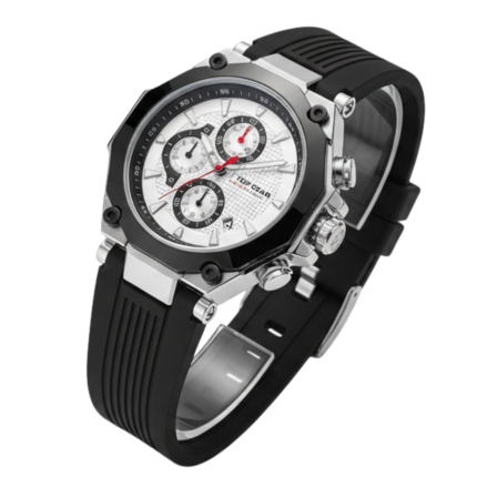 Top Gear Men’s Silver Octagonal Chronograph Black Silicone Watch